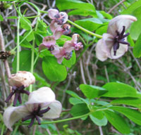 Pot Size: 4 litre (deep) Price: £30.00 Description: Woody-stemmed very hardy, twining climber with five ovate dainty semi-evergreen leafleted leaves, which are purple flushed in spring. Vanilla-scented, large palest purple female and smaller male flowers appear in spring in congested inflorescences. Followed by sausage shaped, purplish fruits when pollinated by another clone. For fruit you must have two clones (seedlings) i.e. not cuttings from the same plant as are normally offered in Western cultivation. Best grown in full sun to part shade in moisture retentive drained soil. From one of our collections gathered from Ch'õllip'o, on the west coast of South Korea, in the autumn of 1997.